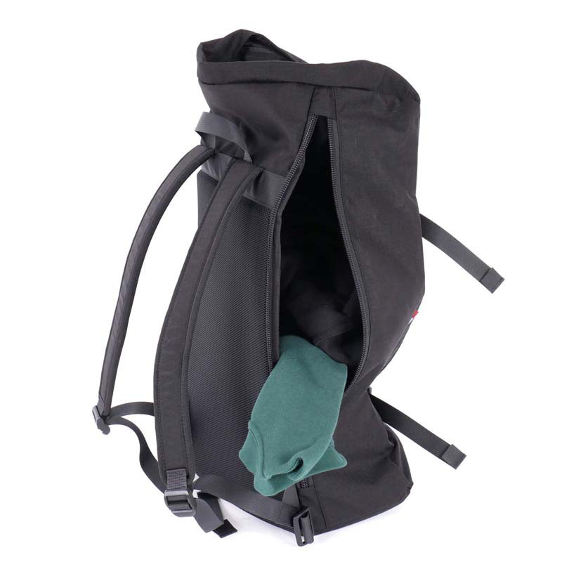 Ook tijdens het fietsen blijft de rugzak bruikbaar. In een paar eenvoudige stappen maak je er een compacte backpack van, handig voor kleding of boodschappen dankzij de aparte ritssluiting aan de achterkant.