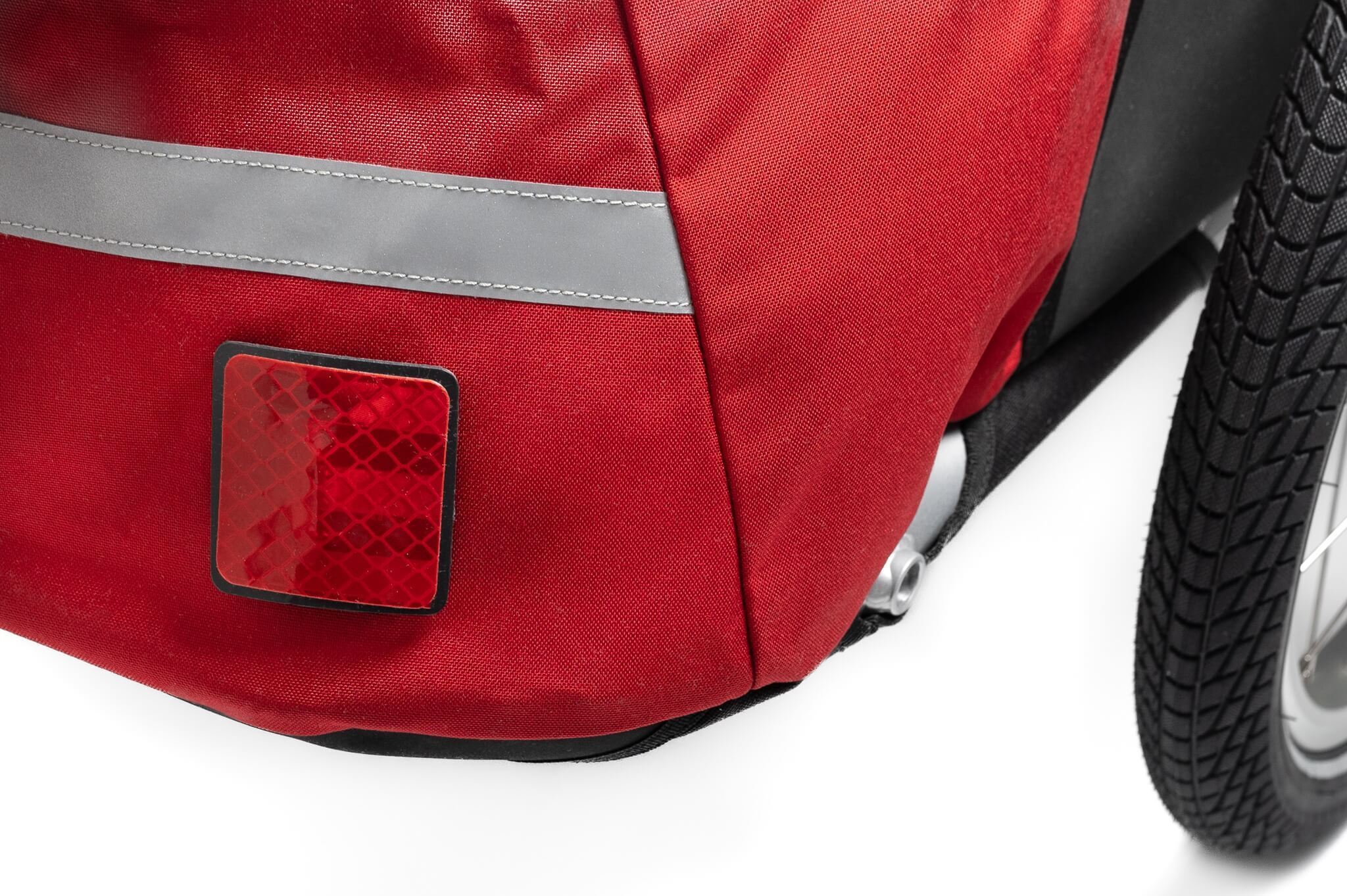 Als u de Cyclone IV Trekking fietskar met het openbaar vervoer mee wilt nemen, zijn dissel en wielen in een handomdraai te verwijderen, zodat voor het oog een grote weekendtas overblijft. Weekendtassen mogen gratis mee in de trein, fietskarren niet. Met de meegeleverde schouderband en de twee grote hengsels is de tas makkelijk verplaatsbaar.