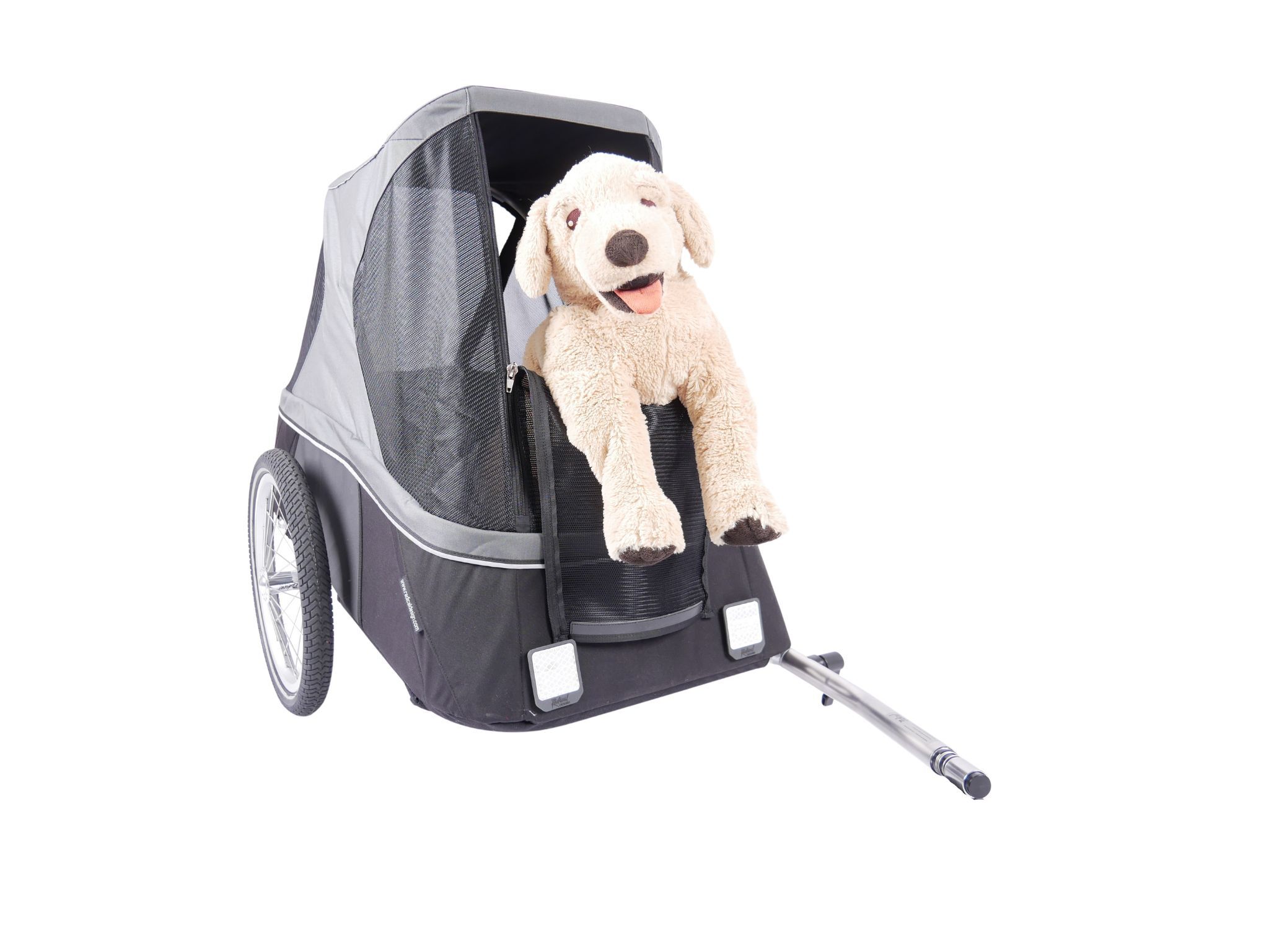 De Cyclone Dog Trailer is voorzien van een roestvrijstalen trekhaak die past op vrijwel elke uitvalnaaf of achteras. De kar wordt standaard geleverd met één trekhaak, maar met een extra trekhaak is de kar in 1 handomdraai over te zetten op een andere fiets met deze trekhaak.