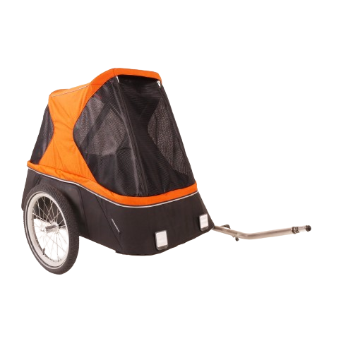 Ontdek de Cyclone Trekking Dog Trailer van Radical Design, ontworpen voor avontuurlijke fietstochten met je hond. Deze hondenkar biedt voldoende ruimte voor een kleine tot middelgrote hond van maximaal 20 kilo, met een binnenmaat van 88x43x65cm (lxbxh).