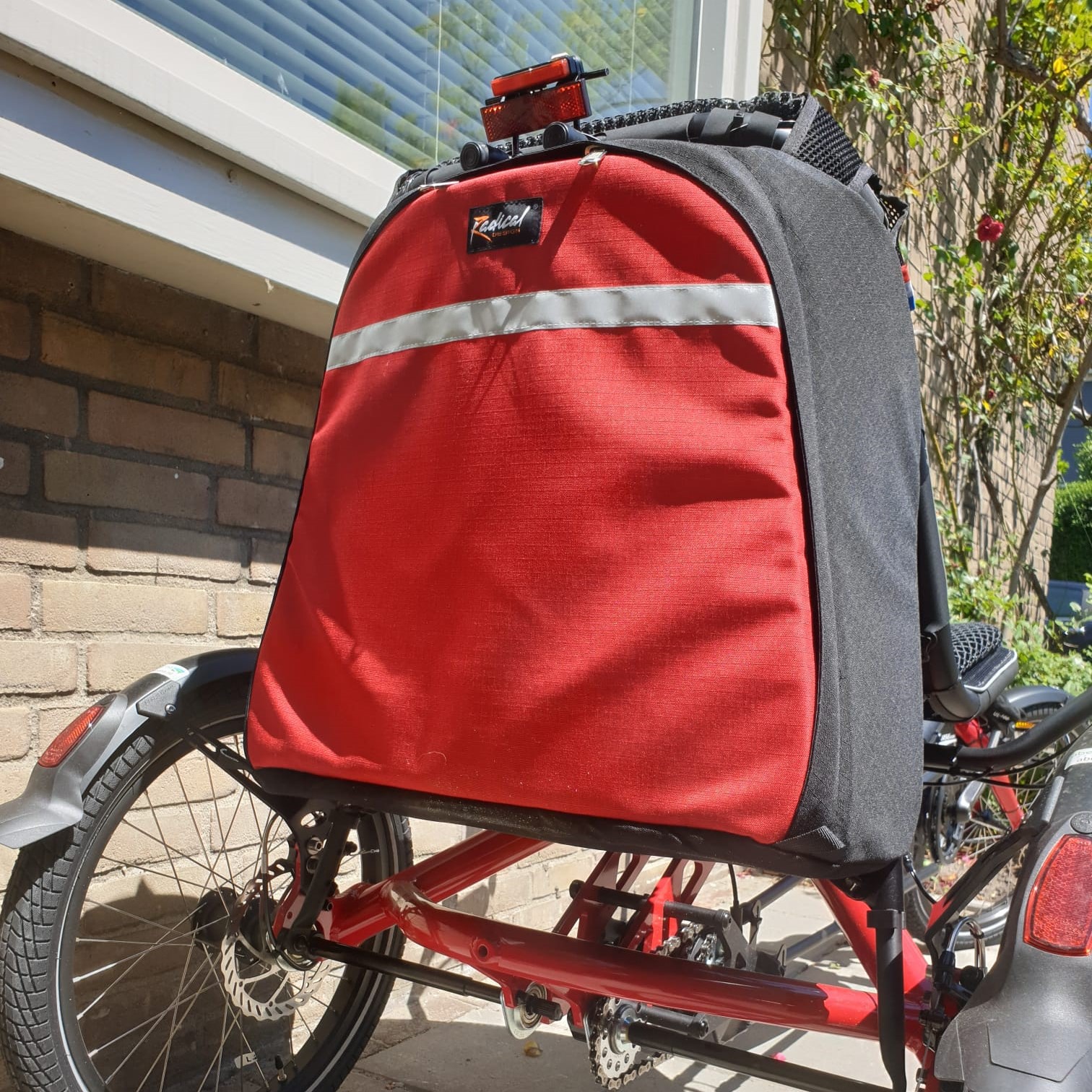 Onze elegante Hase tas heeft een inhoud van 40 liter en is daarmee de grote broer van de Trigo M. Door zijn ophangsysteem hangt hij strak tegen de rugleuning, waardoor hij een eenheid vormt met de fiets.