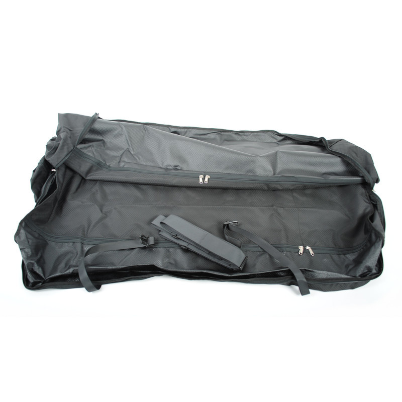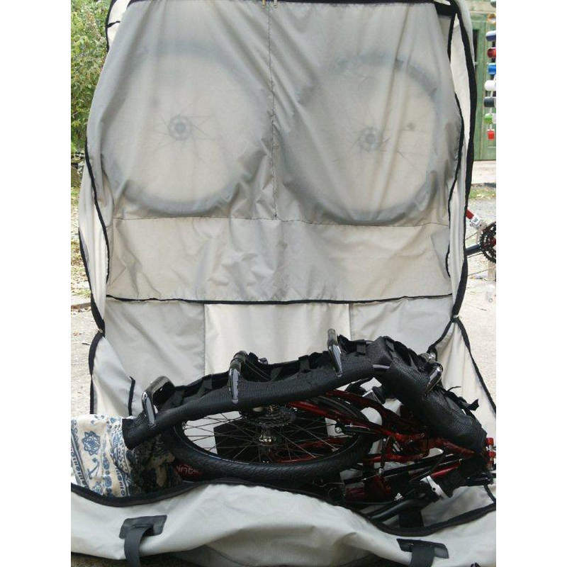 Als u een vouwbare Trike hebt, is dit vast iets voor u. Deze transporthoes, die opgevouwen een klein pakketje is en makkelijk in uw fietstas past, herbergt gemakkelijk vrijwel alle merken vouwbare Trikes. Hebt u een stuk gefietst en wilt u terug met openbaar vervoer of moet een modderige Trike in de schone auto gelegd, de Trike-transporthoes biedt uitkomst. De meegeleverde verstelbare schouderband gaat via gleuven de tas in en wordt direct aan het trikeframe bevestigd, waardoor de stof tijdens het dragen niet belast wordt door het gewicht van de Trike. Diverse vakken met ritssluiting bieden plaats aan wielen, trappers of andere onderdelen.